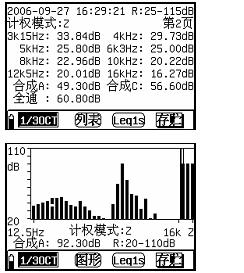 2) 頻率計權(quán):并行(同時)A、C、Z 。頻譜分析界面下由頻譜合成;總值分析界面下由數(shù)字濾波實現(xiàn)。