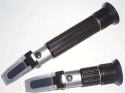手持式折射儀是為測(cè)量溶液的濃度或水溶性混合物的比例而設(shè)計(jì)的精密的光學(xué)儀器。簡(jiǎn)單易用,且價(jià)格優(yōu)惠。它是為測(cè)量多種溶液濃度而專門設(shè)計(jì)的,如:水果汁、飲料、蜂蜜 、鹽水、海水、清洗液、電池液、防凍液和工業(yè)溶液等.只要滴幾滴液體在棱鏡上,然后向著光觀察,就可以讀出溶液的濃度。如果標(biāo)有ATC的是增加了溫度自動(dòng)補(bǔ)償系統(tǒng)。