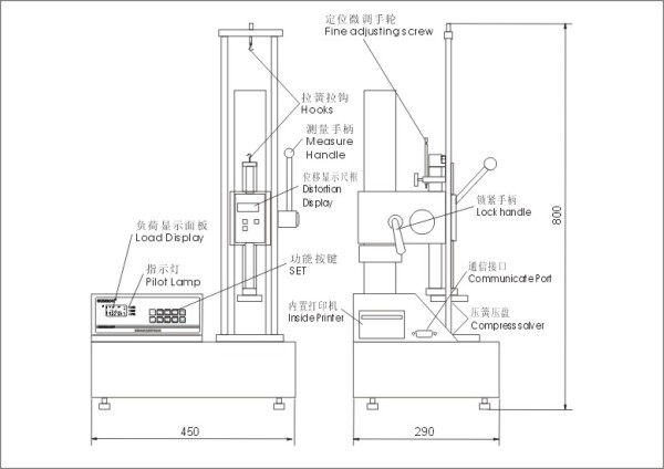 SD系列電子數(shù)顯彈簧拉壓試驗機是測試拉伸、 壓縮彈簧的變形量和負荷關系特性的專用儀器。適用拉伸、壓縮彈簧在一定工作長度下的工作負荷的測試,也可用于橡膠、簧片等彈性器件的彈力負荷測試。具有高精度高分辨率;測試方向顯示;藍色背光燈顯示;上下限偏差值設定判斷,紅綠指示燈及蜂嗚器自動聲光報警設置;可存儲10組測試數(shù)據(jù),自動計算存儲數(shù)據(jù)的平均值;三種單位N、kgf、lbf自動互換;具有峰值保持功能、峰值自動解除功能及解除時間自由設定;無操作自動關機的省電設計,關機時間自由設定;內(nèi)置打印機,可打印10組存儲的測試數(shù)據(jù)和最大值、最小值、平均值、合格或不合格值判斷等優(yōu)點。