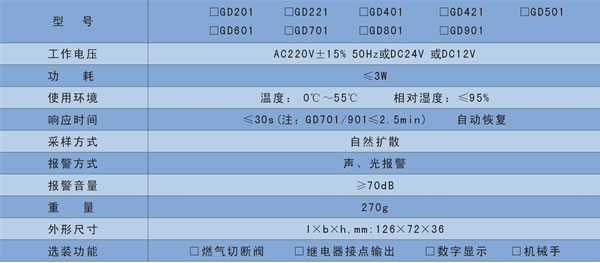 - 關(guān)鍵參數(shù):GD系列易燃、易爆及毒性氣體泄露探測器,采用高品質(zhì)氣敏元件,結(jié)合先進電子技術(shù)及精良工藝而制成;在家庭中有燃氣及毒性氣體存在的地方,一旦液化石油氣、天然氣、城市煤氣、一氧化碳、氫氣等氣體的濃度達到設(shè)定預警值,GD系列氣體探測器將忠實地發(fā)出聲光報警信號
