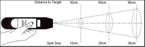 Elcometer 214紅外線(xiàn)數(shù)字溫度計(jì)的點(diǎn)狀系數(shù)比為3:1。