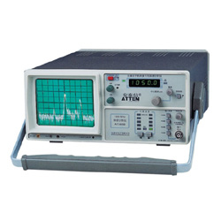 AT5010B頻譜分析儀頻率超出1GHz(0.15~1050MHz)有粗調(diào)和細(xì)調(diào)調(diào)節(jié)中心頻率,加上100KHz/格~100MHz/格掃頻寬度選擇,組成簡易的頻域測量。一個6寸CRT,8×10分格內(nèi)刻度LED顯示可選為中心頻率或標(biāo)記頻率讀數(shù)。