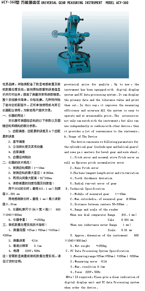 WCY-360型 萬能測齒儀