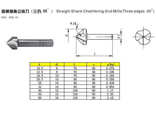 - 儀器名稱:直柄倒角立銑刀(三刃·90°)