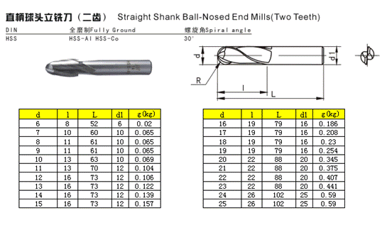 - 儀器名稱:直柄球頭立銑刀(二齒)
