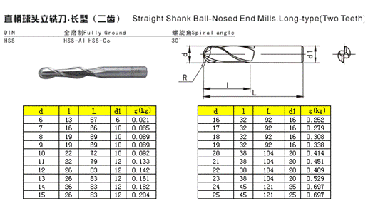 成都成量工具直柄球頭立銑刀·長型(二齒)