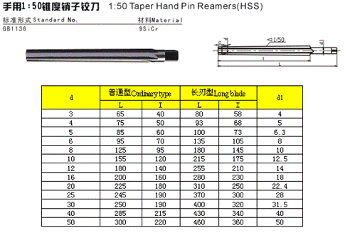 - 儀器名稱:手用1:50錐度銷子鉸刀
