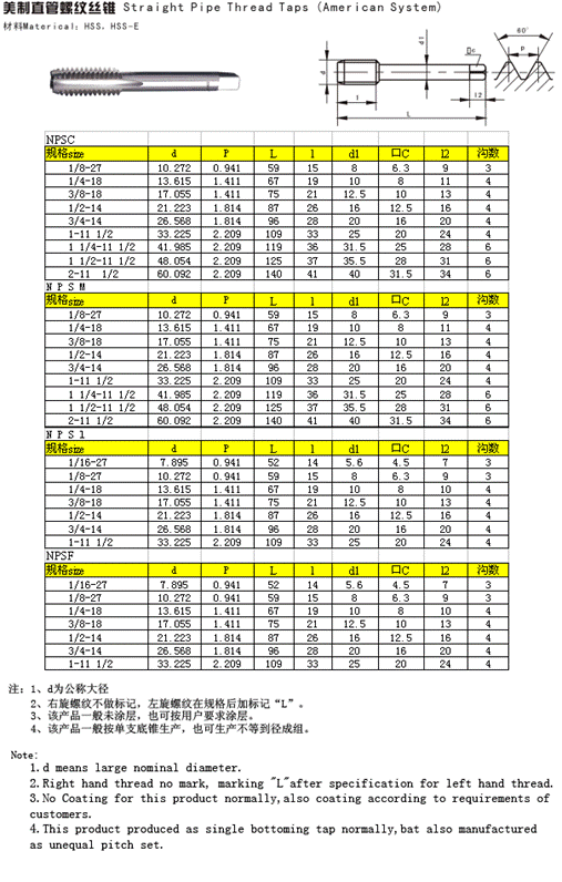 美制直管螺紋絲錐