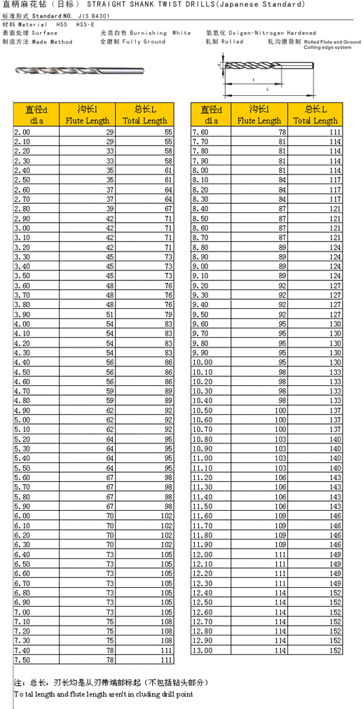 - 儀器名稱:直柄麻花鉆(日標)