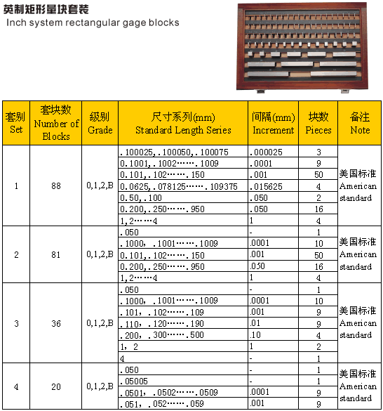 - 儀器名稱:英制矩形量塊套裝