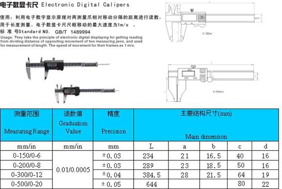 - 儀器名稱:電子數(shù)顯卡尺