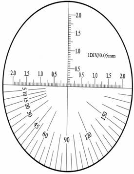 - 關鍵參數(shù):技術參數(shù): 放大倍數(shù): 25倍 物方視場 : 4mm 測量范圍:0~4mm 測量分劃值:0.05mm 角度測量:0~180° 測量精度:±1% 物方工作距離: 31.3mm 系統(tǒng)焦距 : -10 數(shù)值孔徑 : 0.088 系統(tǒng)長度: 122.6mm LED亮度: 600~1000 充電電流: 10mA 充電時間 : 1小時 放電時間 : 2小時