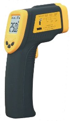 紅外測溫儀測量物體表面溫度,其光學(xué)系統(tǒng)匯聚被測物體的紅外輻射能量,匯聚到的能量聚焦在光電探測器上并轉(zhuǎn)變?yōu)橄鄳?yīng)的電信號,該信號經(jīng)電路轉(zhuǎn)換變?yōu)樽x數(shù)顯示LCD屏幕上,本機(jī)配備的激光燈能有效的對準(zhǔn)被測物體及提高測量精度。