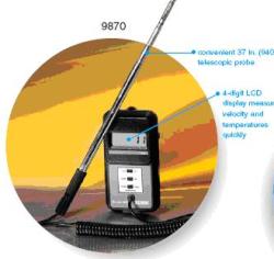 這些袖珍型儀表在使用時只需要很少的培訓。它們是進行通風櫥、噴霧間和通風系統(tǒng)的面速度測量以及進行室內(nèi)空氣檢查的理想工具。 9880 具有一個