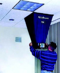 TSI 公司的ACCUBALANCE 套帽式風(fēng)量罩可測(cè)定流經(jīng)各種風(fēng)口(散流器、百葉等)的風(fēng)量。體積輕巧,僅重