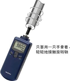 只要用一只手拿著,輕輕地接觸旋轉(zhuǎn)軸,就可以在顯示器上得到直讀轉(zhuǎn)速r/min的測量結(jié)果。另外,與周速環(huán)組合,可以測量線速度 m/minmm/s