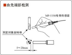 齒科機(jī)械的旋轉(zhuǎn)體或纖維工業(yè)機(jī)械的高速主軸等高速旋轉(zhuǎn)體,以及機(jī)床的高速馬達(dá)的自身之轉(zhuǎn)速等,只要把電磁式傳感器靠近其旋轉(zhuǎn)軸,就可以從鉆頭等上齒的凹凸形狀,在一般的旋轉(zhuǎn)機(jī)械上磁化,非接觸地方便地直讀顯示轉(zhuǎn)速r/min。