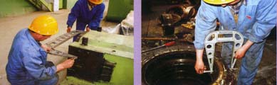 軋輥軸承箱與軋機(jī)牌坊配合通過安裝在軋輥軸承箱體外面的襯板來調(diào)整配合間隙,軋機(jī)工作過程中其磨損程度是不均勻的,通常邊部磨損嚴(yán)重而中間磨損很少。用一般千分尺測量檢查時(shí),由于尺架中部大圓弧的干涉,只能測量軸承箱的邊部尺寸而,而中部尺寸測量不到,致使檢測結(jié)果失真。使用仿型外測量千分尺,由于它們形狀和尺寸根據(jù)軋輥軸承箱制作,就可以較好的解決這個(gè)問題。 |