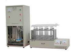 KDN系列定氮儀是吸收國(guó)內(nèi)外同類產(chǎn)品之優(yōu)點(diǎn)。設(shè)計(jì)改進(jìn)的一款,性能穩(wěn)定、操作方便、精度高等優(yōu)點(diǎn)的高性能定氮儀。整套裝置,由消化器,蒸餾器兩大部分組成。首先,消化部分采用了井式電加熱裝置,使樣品在消化管內(nèi)取得最佳的消化效果和最短的消化時(shí)間。消化時(shí)產(chǎn)生的SO2等有害氣體,通過(guò)排污管經(jīng)抽吸泵排入下水道,有效的抑制有害氣體的外逸。蒸餾器采用自來(lái)水作為加熱水源,所以樣品在蒸餾時(shí)可以連續(xù)不斷的進(jìn)行??蓽y(cè)定糧食、飼料、食品、乳制品、飲料、土肥、醫(yī)藥及其它農(nóng)副產(chǎn)品蛋白質(zhì)含量。