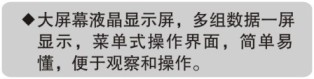 ●大屏幕液晶顯示屏,菜單式操作界面,簡單易懂。
