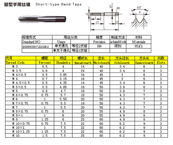 - 儀器名稱:短型手用絲錐