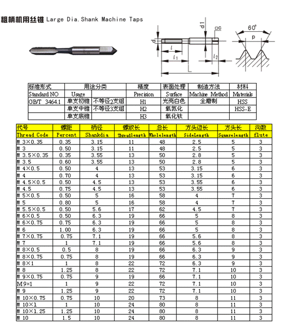 - 儀器名稱:粗柄機用絲錐