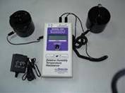 二、表面電阻測量(點對點) (Surface Resistance Measurement (RTT)) 這個測量方法是符合EOS/ESD-S4.1測量要求來測量獨立于接地的兩點之間的電阻,用這個測量方法得出的測量結(jié)果與被測物體的處理、兩個5磅探頭之間的距離等因素有關(guān),因此,應(yīng)選擇正確的測量規(guī)程,每次在同樣要求的測量條件下進行測試。 A、將連線插頭插入表的兩個3.5毫米插孔,并將香蕉插頭與兩個5磅重探頭相聯(lián)。 B、按照測量規(guī)程將兩個探頭放置在待測物體表面。 C、選擇所需的電壓值(10伏或100伏) D、按下開關(guān)直到顯示出所選的電壓值(10伏或100伏),繼續(xù)按著開關(guān)直至所測電阻(單位為歐姆),相對濕度和溫度顯示在液晶顯示屏上。